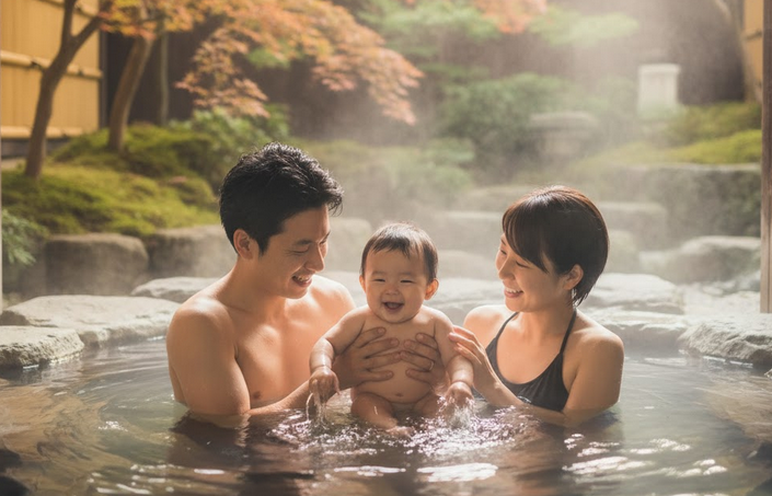 大浴場と違って、赤ちゃんが少し泣いてしまっても大丈夫。パパもママも一緒に入れるので、ワンオペお風呂の慌ただしさもありません。初めての温泉に目を丸くする我が子の愛らしい表情は、きっと最高の思い出になりますよ。