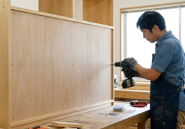 「プロの家具職人はボンドでガチガチに固めるって聞くけど、素人がネジだけで大丈夫?」