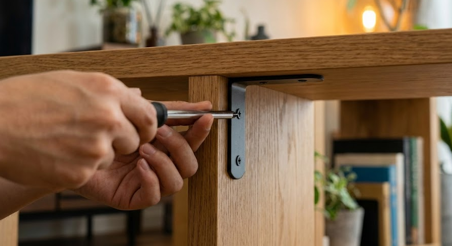 背板なし(オープン)なら「金折(L字金具)」で補強する