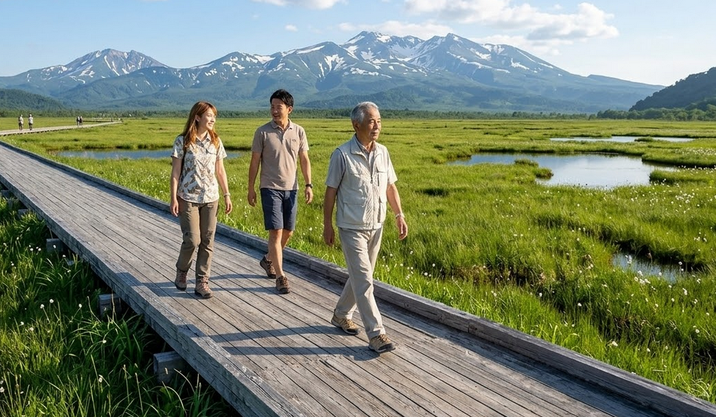 その最大の特徴であり、初心者に全力でおすすめする理由は、なだらかな湿原の地形に沿って、非常に歩きやすい木道が延々と整備されている点にあります。