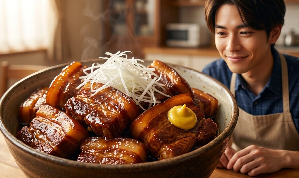 家にある身近な野菜と調味料、そしてほんの少しの豪快かつ理にかなった下処理を加えるだけで、信じられないほど極上の角煮が完成します。