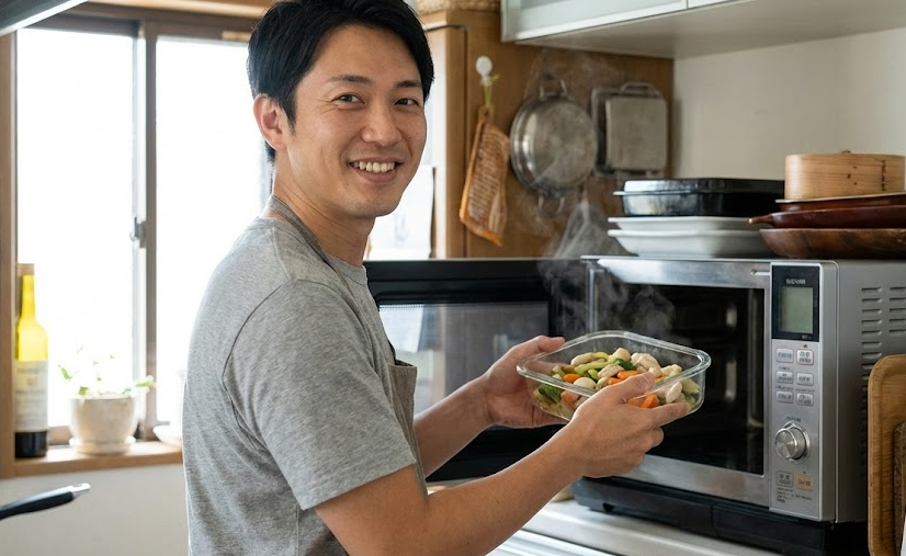 包丁すら使わず、まな板も汚さず、レンジだけで完成する、男のための「生存戦略としてのズボラ自炊術」です。