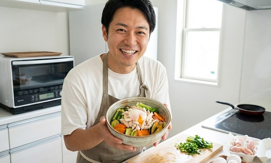包丁すら使わず、まな板も汚さず、レンジだけで完成する、男のための「生存戦略としてのズボラ自炊術」です。