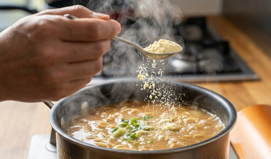 熱々のスープに溶け込み、一口目のインパクトを劇的に改善します。