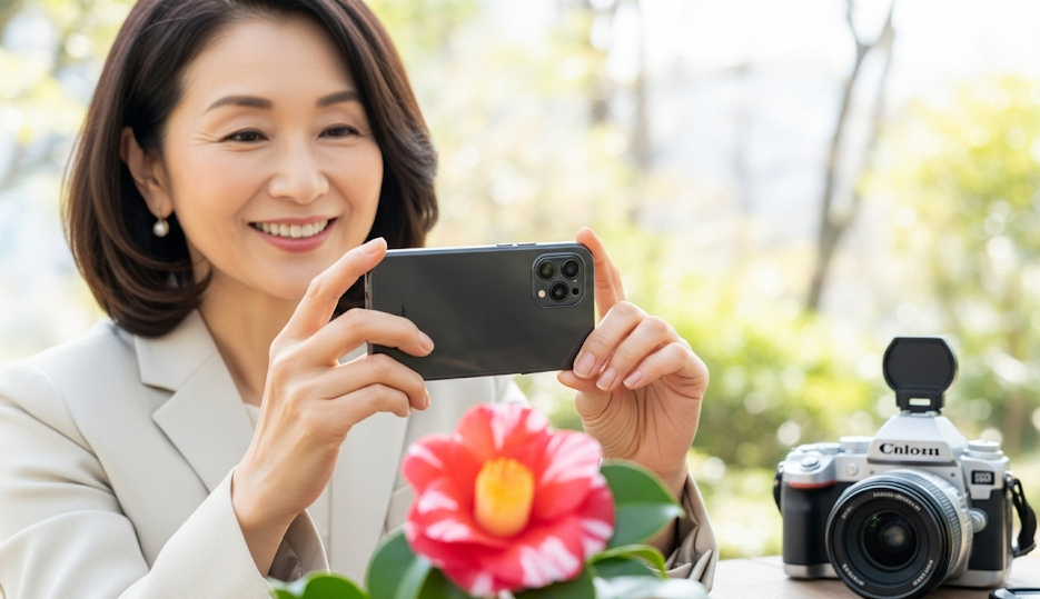その点において、いつもあなたのポケットやバッグに入っているスマートフォンは、最強のカメラと言えるでしょう。お孫さんのふとした笑顔、散歩道で見つけた可憐な花、旅先で出会った夕焼け。そんな「撮りたい!」という心の動きに、瞬時に応えてくれる最高の相棒です。