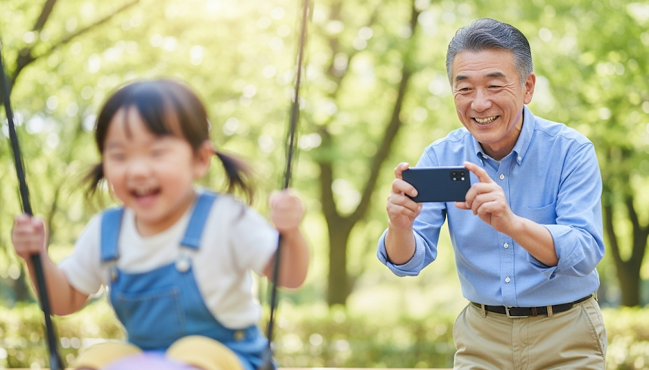 - コミュニケーションが9割: まず、構図を考える前に、あなた自身が一緒に遊んでしまうのが一番の秘訣です。カメラを構えて「はい、笑って!」と指示するのではなく、同じ目線で遊び、笑い合う時間の中で、ふとした瞬間にスマホを向ける。その方が、ずっと自然で、心からの笑顔が撮れます。「カメラマン」になるのではなく、「一緒に遊ぶおじいちゃん・おばあちゃん」でいることを心がけてみてください。