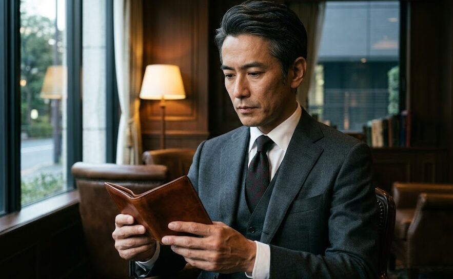 しかし、パリッとしたビジネススーツや、上質なウールのコートに合わせると、どうしても財布だけが浮いてしまい、ちぐはぐな印象になってしまいます。