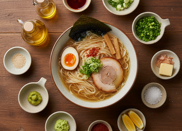 このセクションでは、困った時の緊急避難的な塩ラーメンの味薄い問題を解決する、魔法のちょい足しアレンジ術をご紹介します。ポイントは、塩を足すのではなく、「旨味」「コク」「風味」という三銃士を呼び覚ますことです。
