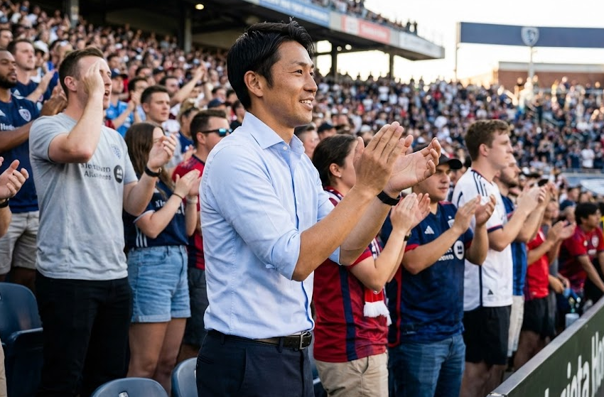 たとえスーツ姿でも、周囲と同じタイミングで感情を共有していれば、あなたは完全にスタジアムの一部です。