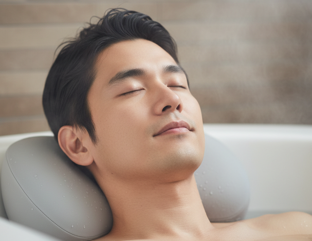 半身浴でじっくり汗をかく際、意外と首元が冷えてしまうのが悩みどころ。そんな時に活躍するのが、お風呂のフチに置いて首を支えるバスピローです。浴槽のお湯で温められるタイプのものを選べば、首や肩の血行も促進され、まるで温かい蒸しタオルを当てているかのような心地よさ。日頃のデスクワークで凝り固まった首肩を、優しくほぐしてくれます。