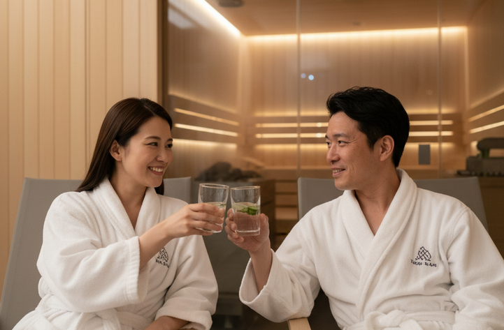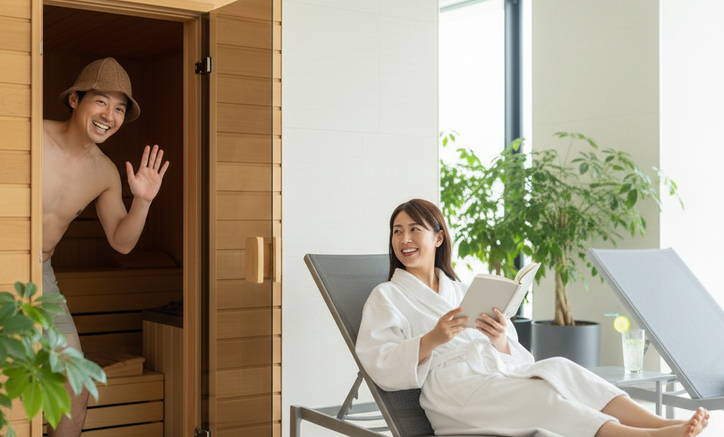 A2. もちろんです!プライベートサウナなら、サウナ室の温度を少し低めに設定してもらうことも可能ですし、あなたがサウナに入っている間、旦那様は休憩スペースでリラックスしている、という過ごし方もできます。また、高級スパ施設なら、あなたはアロママッサージを受け、旦那様はサウナへ…といった楽しみ方も。二人それぞれの時間を尊重しつつ、特別な空間を共有するのはとても素敵ですよ。