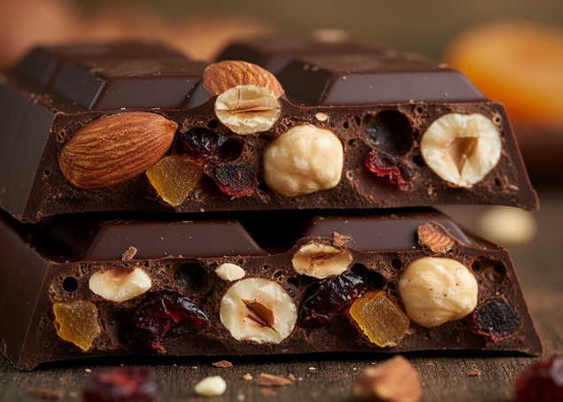 • ナッツやドライフルーツがぎっしり入ったチョコレート: 汗と共に失われがちなミネラルやビタミンを補給できます。